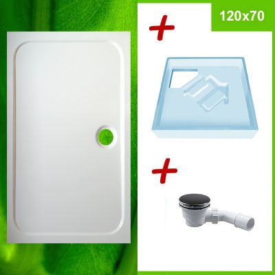 AKTION ✔ Duschtasse 120x70 mit Wannenträger + Sifon KOMPLETT ANGEBOT TSB116 ✴ Eine kleine DUSCHWANNE inklusive ZUBEHÖR als DUSCHBECKEN SPAR-ANGEBOT für Ihre neue DUSCHE.