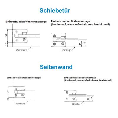 - Der erforderliche Wannenrand für die Montage beträgt 60 mm. Bei schmaleren Wannenrand empfiehlt sich die Einsatz eines Keils (individuell zuschneidbar - sprechen Sie uns an)