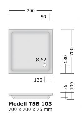 Größenangaben, Duschtasse: 700x700 mm
